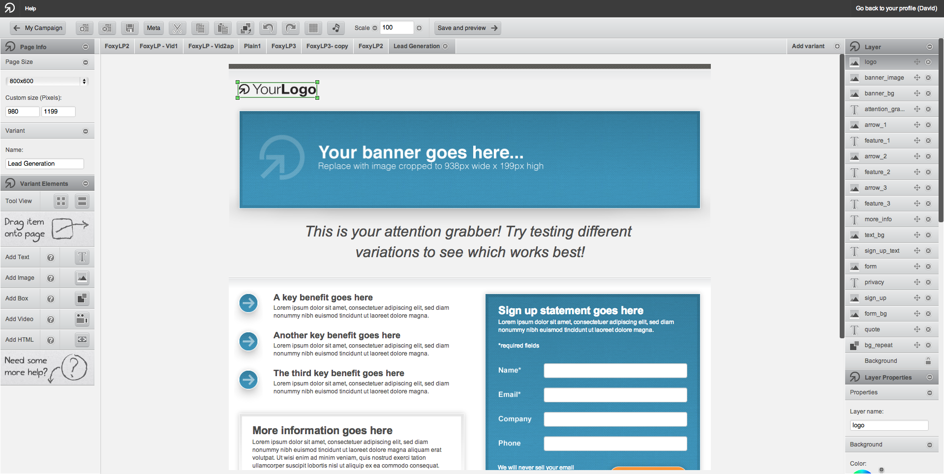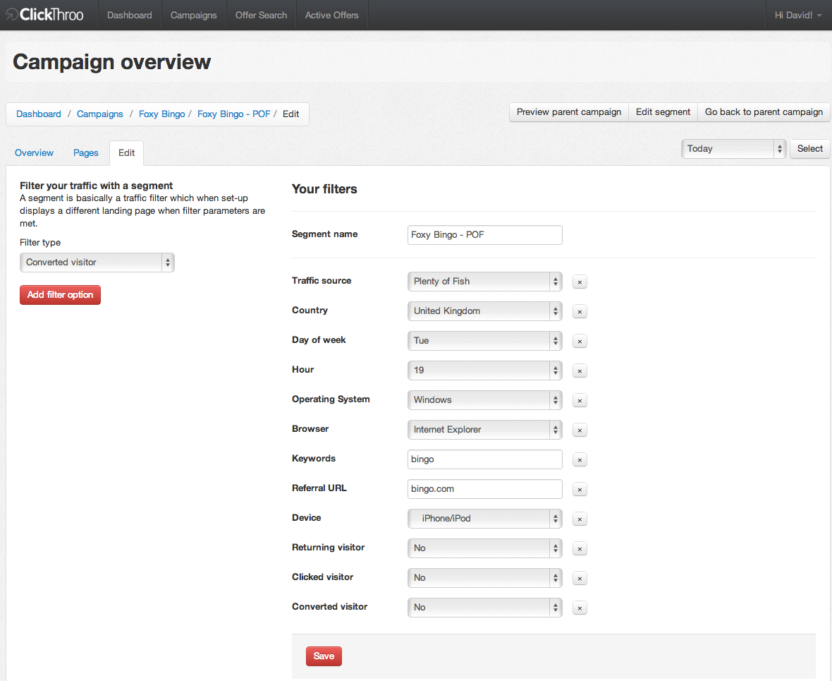 Optionally target different ‘segments’ of your traffic with different landing pages- choose from a wide range of filters (see the image) and build targeted pages for each segment. Show the right content to the right people, always…